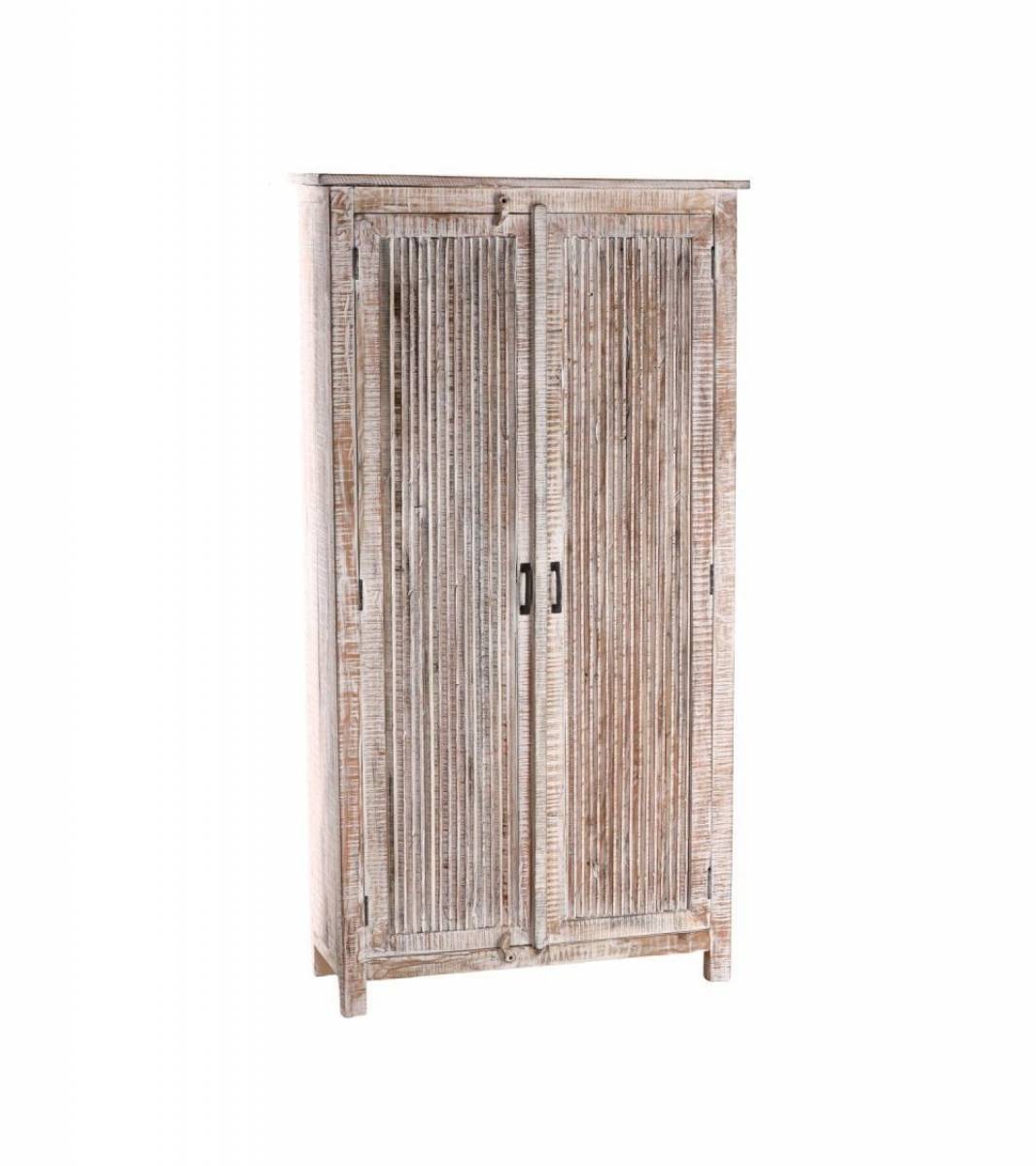 L'armoire blanchie présente une finition délicate qui lui confère un aspect vintage et authentique. La patine blanchie met en valeur les détails du grain du bois, ajoutant ainsi une esthétique naturelle et chaleureuse à votre espace.