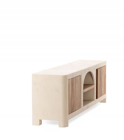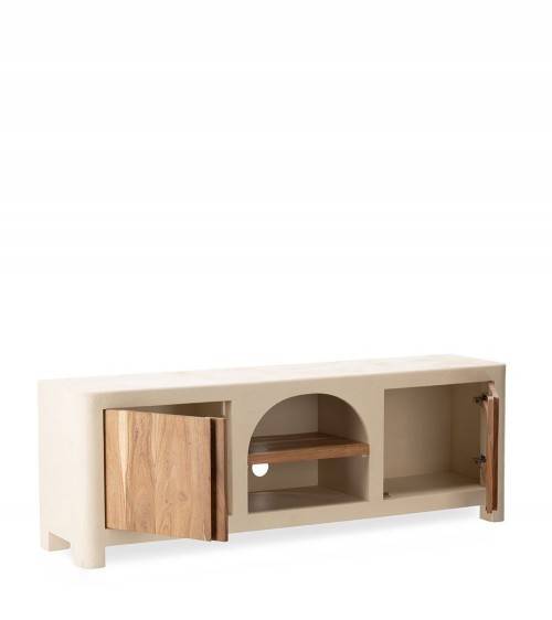 Le meuble TV Comino allie élégance et authenticité grâce à sa conception en acacia, contreplaqué et panneaux de fibres à densité moyenne, offrant une structure robuste et durable. Sa finition artisanale naturelle met en valeur les nuances uniques du bois, faisant de chaque pièce un véritable élément de caractère dans votre intérieur. Avec son design à la fois sobre et raffiné, ce meuble TV apporte une touche chaleureuse et intemporelle, idéale pour sublimer un salon au style naturel ou contemporain. Chaque exemplaire étant une pièce unique, il incarne le mariage parfait entre artisanat et modernité.