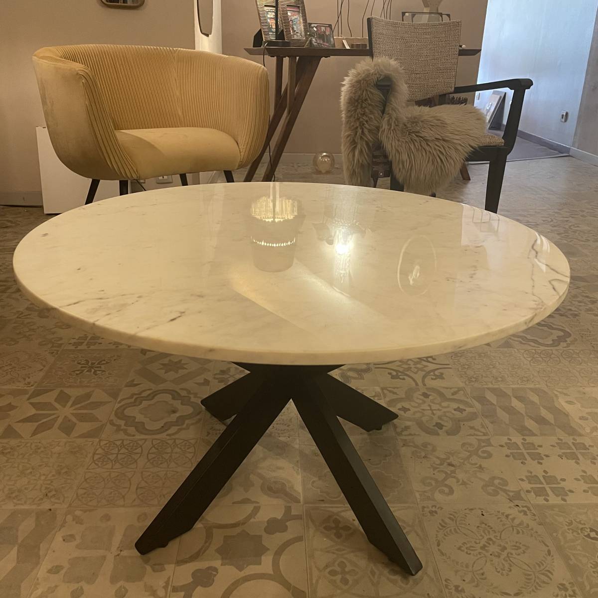 Le plateau en marbre blanc, d'une beauté naturelle et unique, confère à la table une aura de luxe. Chaque veinure délicate raconte une histoire artistique, ajoutant une dimension artistique à votre décor. La forme ronde, élégante et équilibrée, encourage la convivialité et crée une atmosphère accueillante.